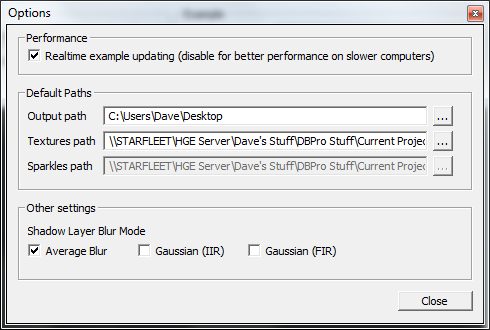From the Default Paths panel, you can change the path of the output generated, as well as which folder is used for textures and sparkles. (N.B. There is a limit on the number of textures supported per folder of about 4500 to 5000)
