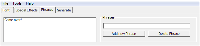 A phrase is a sentence pre-rendered onto an image, rather than constructed at runtime by your program from the tile set. This is useful for game titles and credits, as well as website design,
